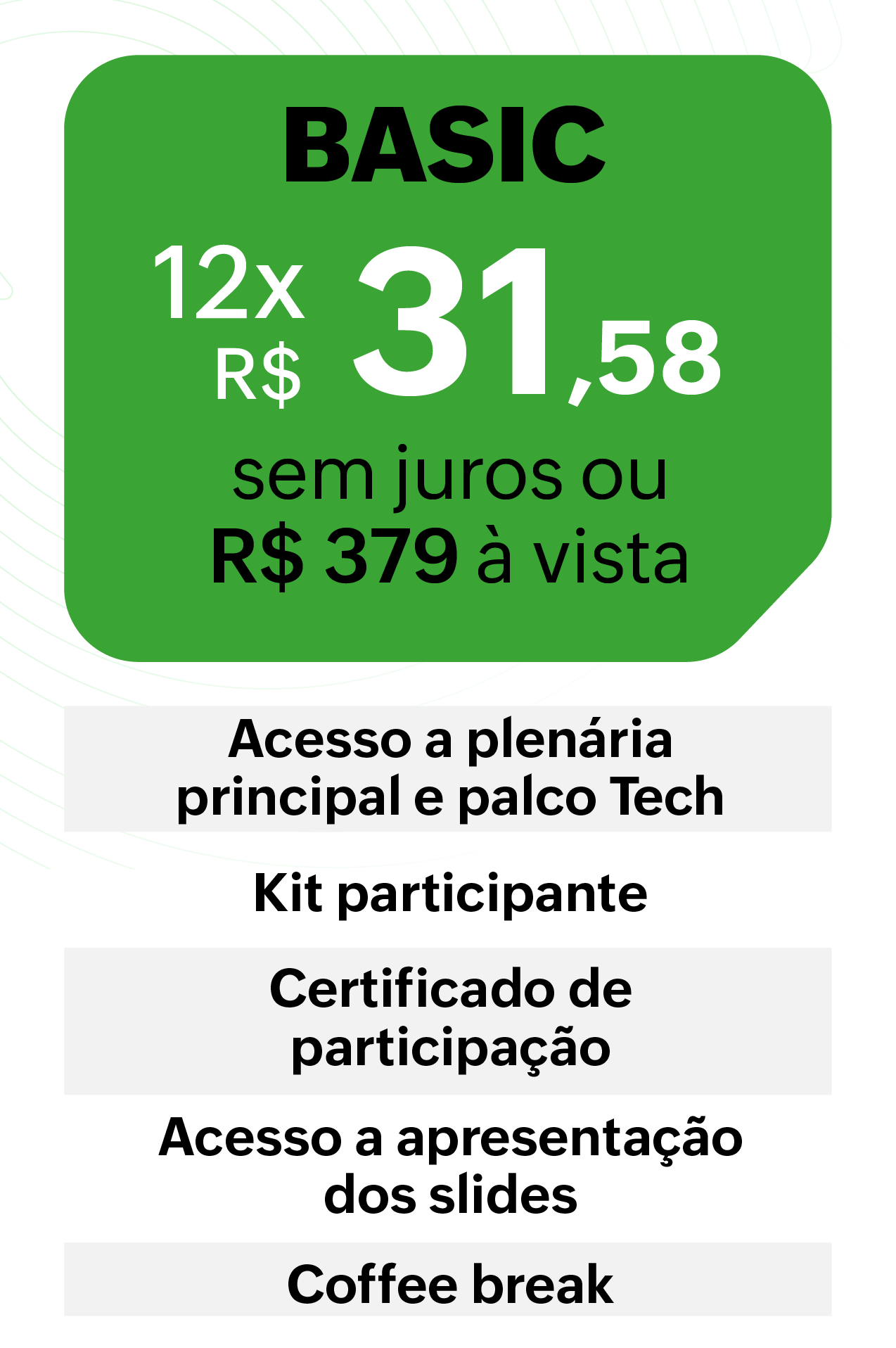 A venda dos ingressos é realizada através do Sympla. As formas de pagamento disponíveis na plataforma incluem Pix, cartão de crédito e boleto.